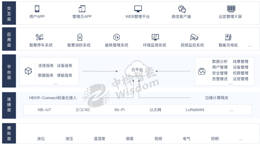 智慧园区大脑横向打通园区各子系统,纵向贯穿“端、边、云”,实现向下管理对象全联接,向上支撑生态伙伴快速应用创新开发。基于此技术架构,为客户提供丰富的智能化产品与服务,解决客户问题。